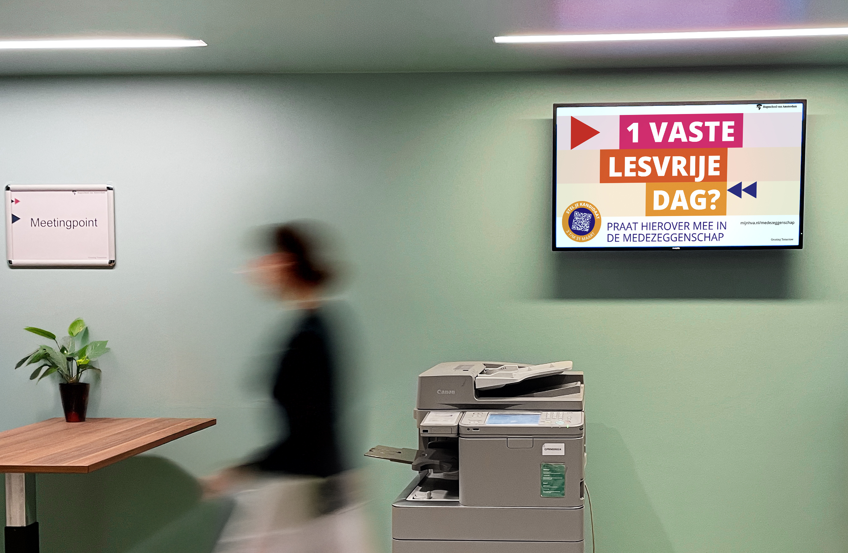 Ieder jaar is het weer lastig om kandidaten te werven voor de medezeggenschapsraden (MZR) van de Hogeschool van Amsterdam (HvA). Het is een erg belangrijk onderdeel binnen de organisatie en heeft serieuze invloed op het beleid en uitgavepatroon. De HvA heeft ons gevraagd om met een campagne te komen die echt aandacht trekt van zowel studenten als medewerkers. Door het laten zien van belangrijke onderwerpen die realiteit kunnen worden, laten we zien dat het werk bij de MZR echt gaat over onderwerpen die het leven van de student en medewerker raken. De campagne is over alle faculteiten en gebouwen van de HvA uitgerold.