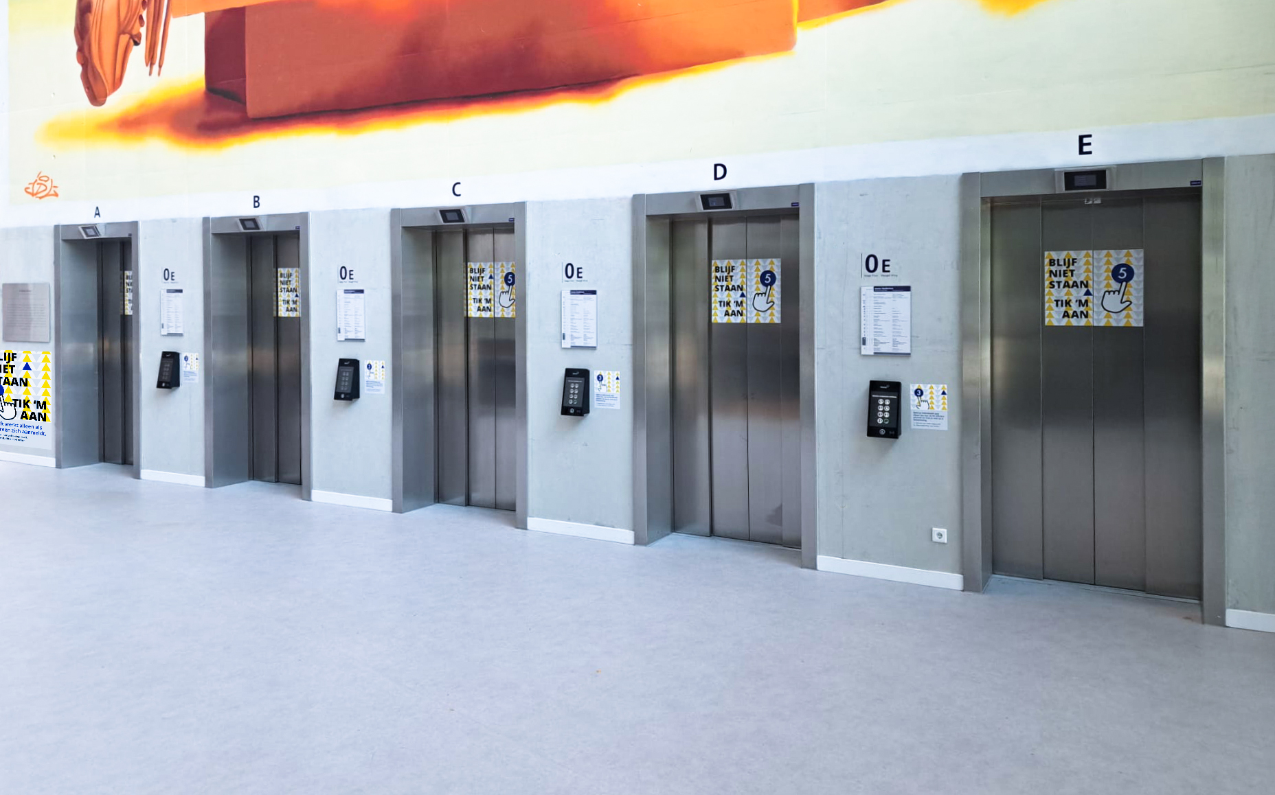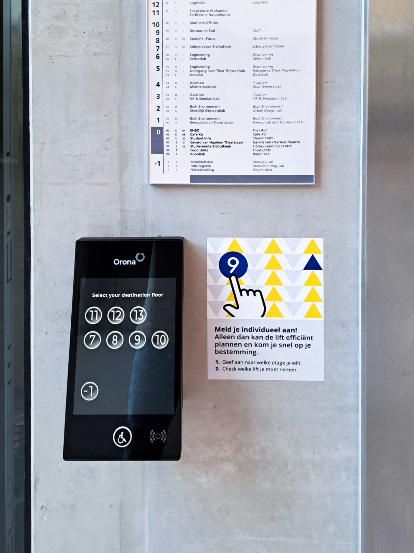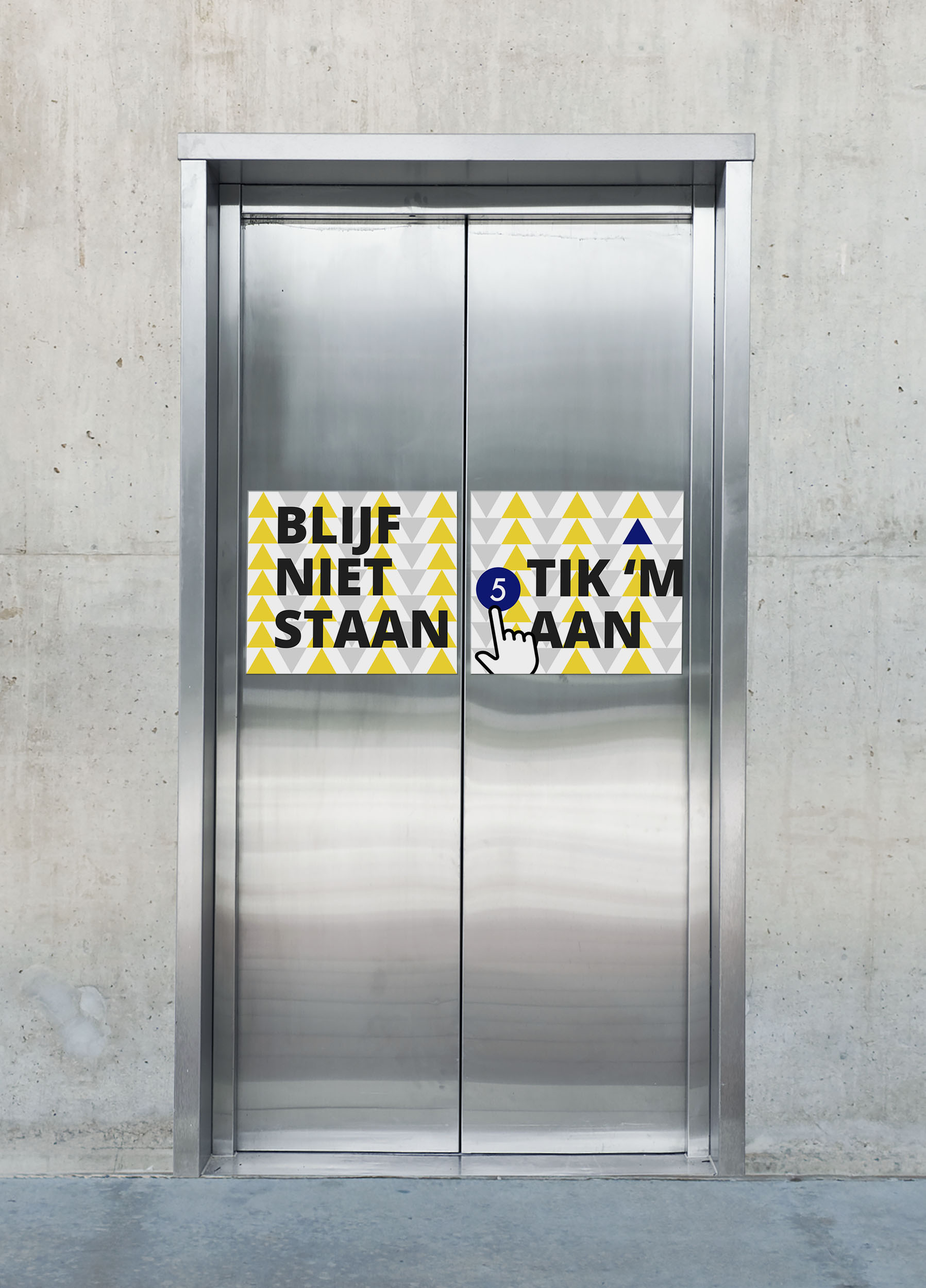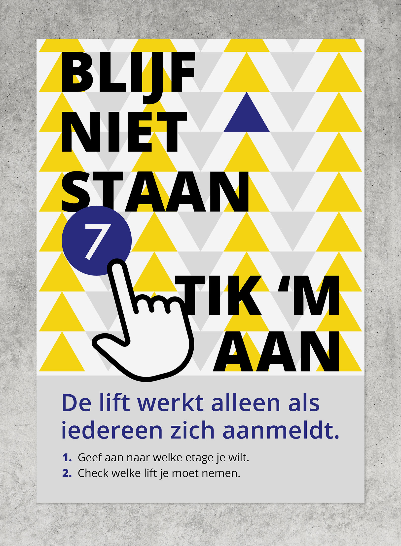 Aan Fellows de vraag om een interne campagne te ontwikkelen om mensen duidelijk te maken hoe ze de liften moeten gebruiken. Leuke klus omdat je hier vormgeving en actiematig communiceren moet combineren.